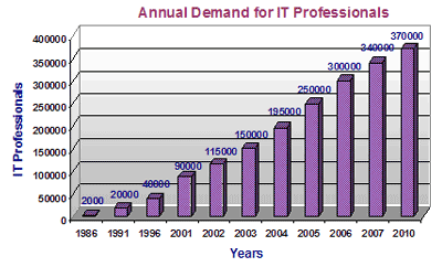 and in the year 2010 almost 3,70,000 IT professionals will be